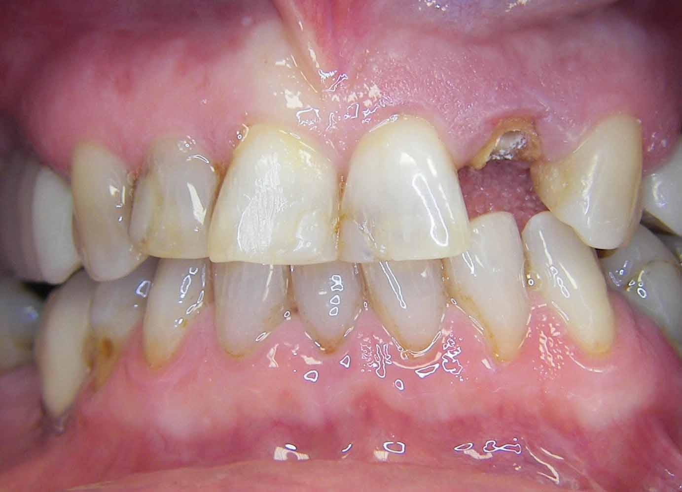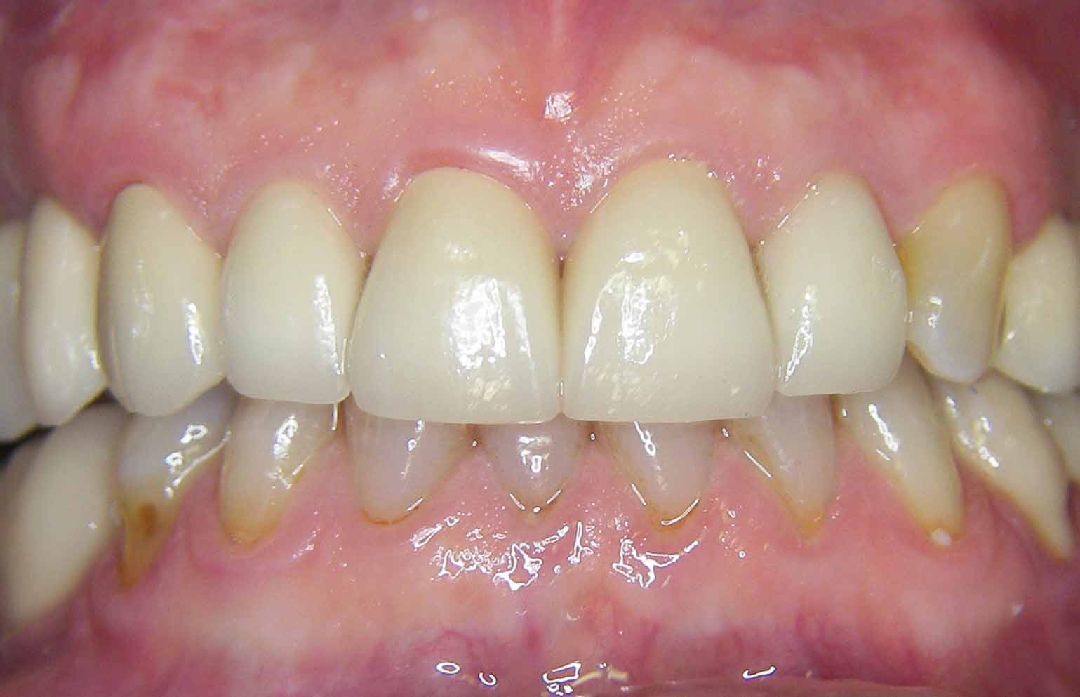 Upper anterior teeth with fixed crowns made of all ceramic