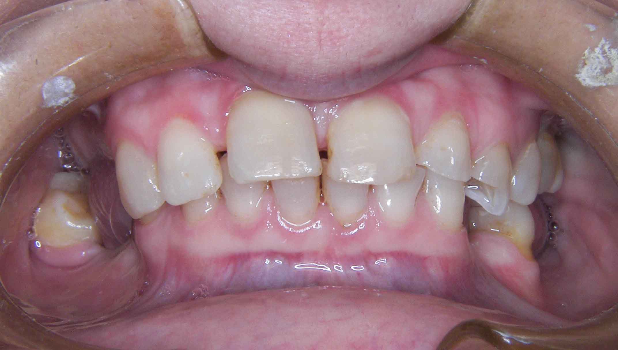 Alterações de cor devido a utilização de Tetraciclinas em criança. Vários tratamentos feitos ao longa da vida para disfarçar o problema sem resultados satisfatórios.Tratamento